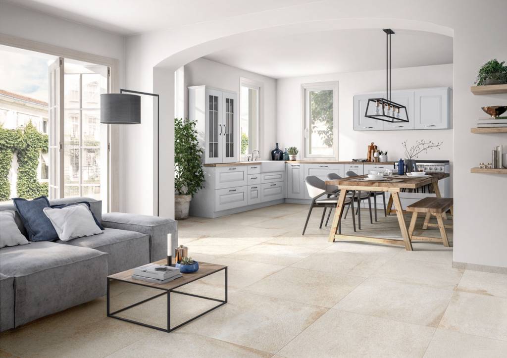 Aufgrund ihrer geringen Plattenstärke bieten sich Bodenfliesen mit Natursteindekoren besonders im Bereich der Sanierung an, da sich daraus eine niedrige Verlegehöhe ergibt. Natursteininterpretationen besitzen aufgrund ihrer dicht geschlossenen, harten Oberfläche eine hohe Abriebfestigkeit – und eignen sich deshalb auch für stark frequentierte bzw. gewerbliche Bereiche.